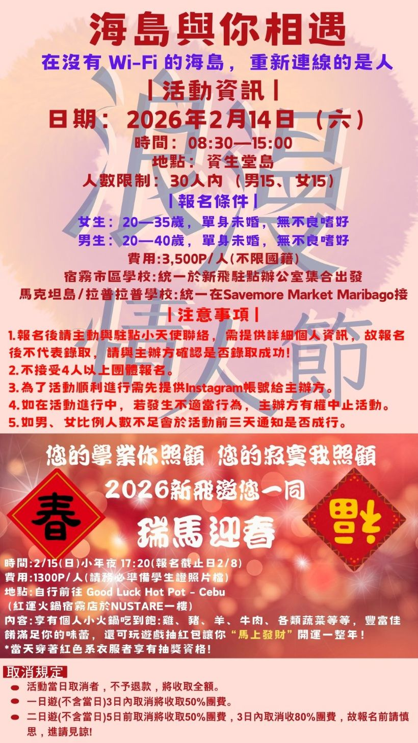 2月15日,小年夜讓宿霧的大家一起集合起來,跟著我們一起團圓吃火鍋。🍲🍲